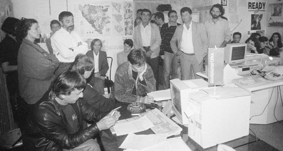Sa jednog od sastanaka u redakciji SRNE 1992. godine (Todor Dutina, Jadranka Pandurević, Stjepan Zlikovac, Nenad Tadić i dr.)