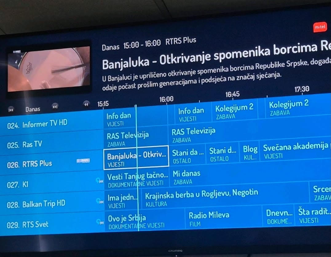 RTRS plus (ne na glavnom programu, u svojoj programskoj šemi imao je najavu prenosa sa otkrivanja spomen-obilježja borcima Republike Srpske, ali je to u zadnjem trenutku izmijenjeno. Zvog čega su to radili i da li je u pitanju nečiji nalog ostaje da se vidi.