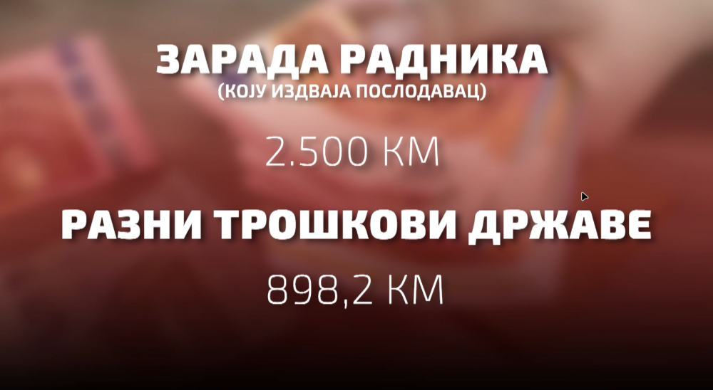 Od 2.500 maraka koje poslodavac izdvoji za vašu zaradu, država odmah uzme 898,2 maraka kroz razne doprinose i poreze.