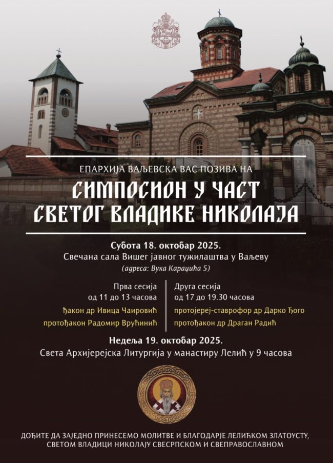 Eparhija valjevska, sa blagoslovom episkopa Isihija, domaćin je simponzijuma u čast Svetog Vladike Nikolaja (Velimirović), za koga je sveti Ava Ćelijski (dr Justin Popović) rekao da je najveće čedo koje je rodila majka Svetosavka, posle Svetoga Save.