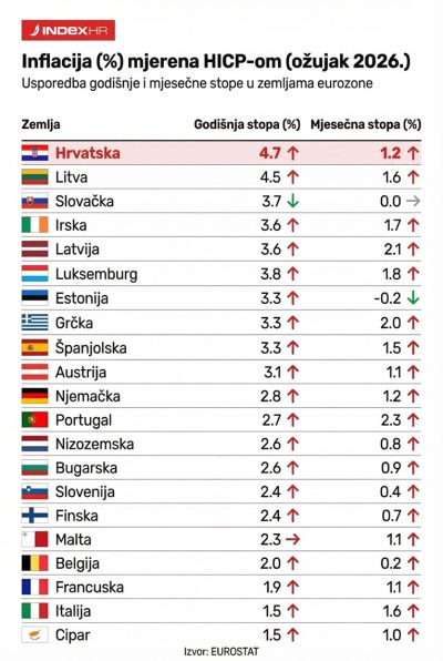 Porast inflacije, Hrvatska najgora u EU