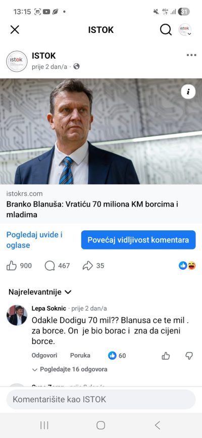 Naravno, daleko od toga da imamo iluziju da je portal ISTOK razlog rasta Blanušine popularnosti, niti da je on mjera stvari, ali je pokazatelj jasan. ISTOK se ne bori za lajkove, obzirom da nema ni reklama od kojih većina portala i blogova ubire neki prihod, a niti ima sponzora, što je vidljivo i iz navedene objave koja se ne sponzoriše. Iako je ISTOK opoziciono orijentisan, on politički ne pripada nikome i ne rijetko smo kritikovali i SDS i opoziciju u svim slučajevima kada smo to smatrali opravdanim. Nekima, koji „žive za lajk“ i smatraju da je on jedina mjera popularnosti, to je baš zasmetalo, pa su nas kritikovali i kvalifikovali političkim jezikom na razne načine, pripisujući uređivačkoj politici ISTOK-a kvalifikacije koje ne samo da nisu realne, nego više govore o bolesnom stanju naše politike koja od ličnih sujeta ne vidi dalje od sopstvenog nosa.