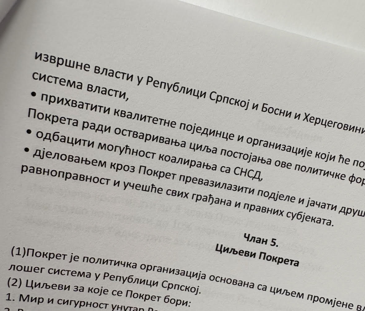 U sporazumu, u koji je uvid imao BN, predviđa se formiranje političkog pokreta čiji je osnovni cilj promjena postojećeg sistema vlasti u Republici Srpskoj i Bosni i Hercegovini, kao i, kako se navodi, uspostavljanje pravednijeg, efikasnijeg i transparentnijeg upravljanja.