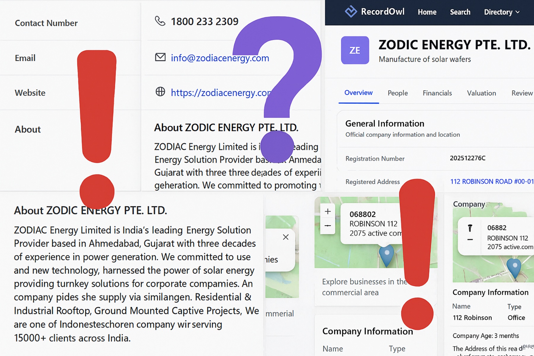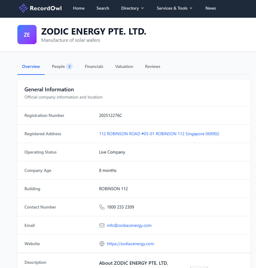 Tražeći javno dostupne informacije o firmi ‘‘Zodic energy‘‘ jedino što smo našli je na sajtu recordowl.com uz napomenu da je vlasnik ovog domena sakriven a povjerenje u ovaj sajt korisnici ocjenjuju niskim.