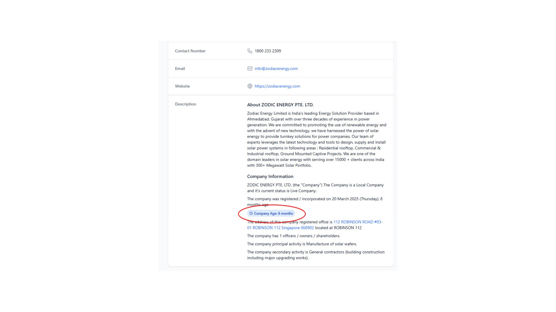 Prema podacima sa ovog sajta, firma ‘‘Zodic energy‘‘ registrovana je 20. marta 2025. godine, trenutni broj zaposlenih je 3 dok je do jula ova firma imala svega jednog zaposlenog radnika.