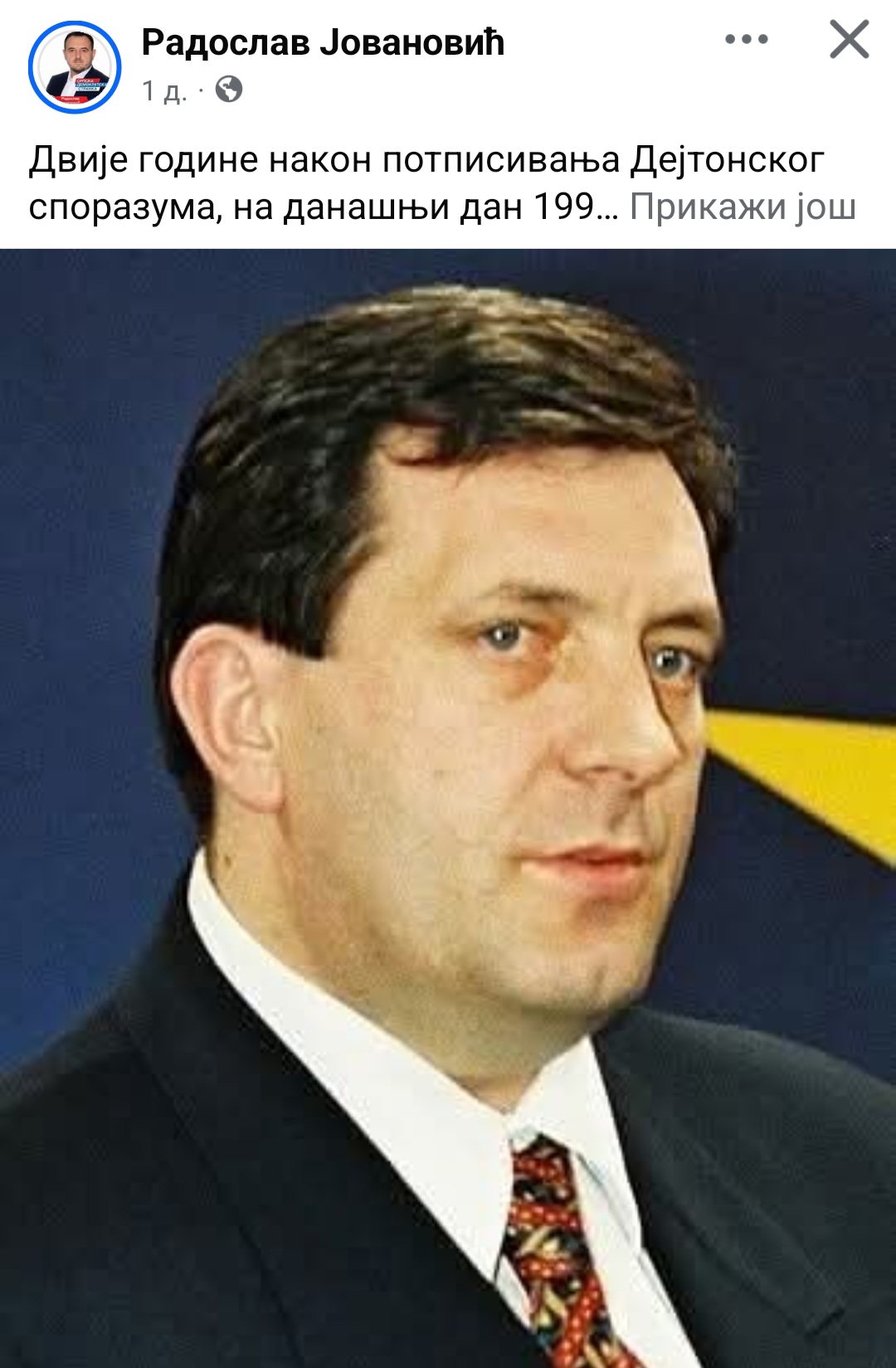 Objavio je ovo na društvenim mrežama Radoslav Jovanović, član glavnog odbora SDS-a.
